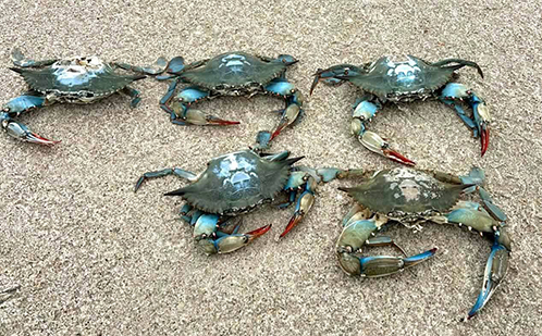 Вже четвертий тиждень на узбережжі Чорного моря у Національний природний парк "Тузлівські лимани" його працівникіи знаходять блакитних крабів. Про це на своїй сторінці в фейсбуці повідомляє науковець і співробітник НПП Іван Русєв.